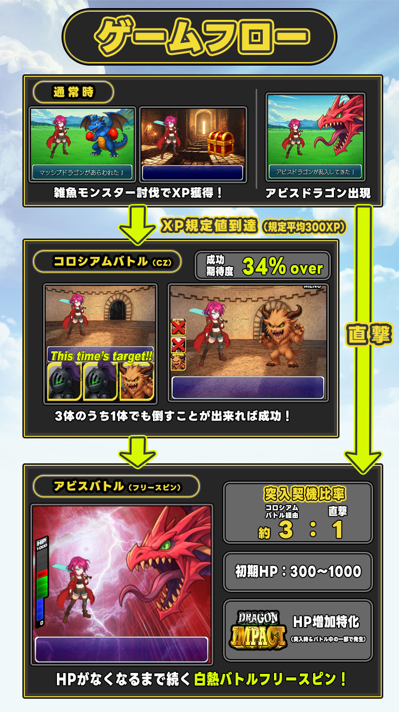 ・終了:ドラゴンRPG「5リールスロット」を終了します。獲得した経験値はこのボタンを押したときに反映されます。